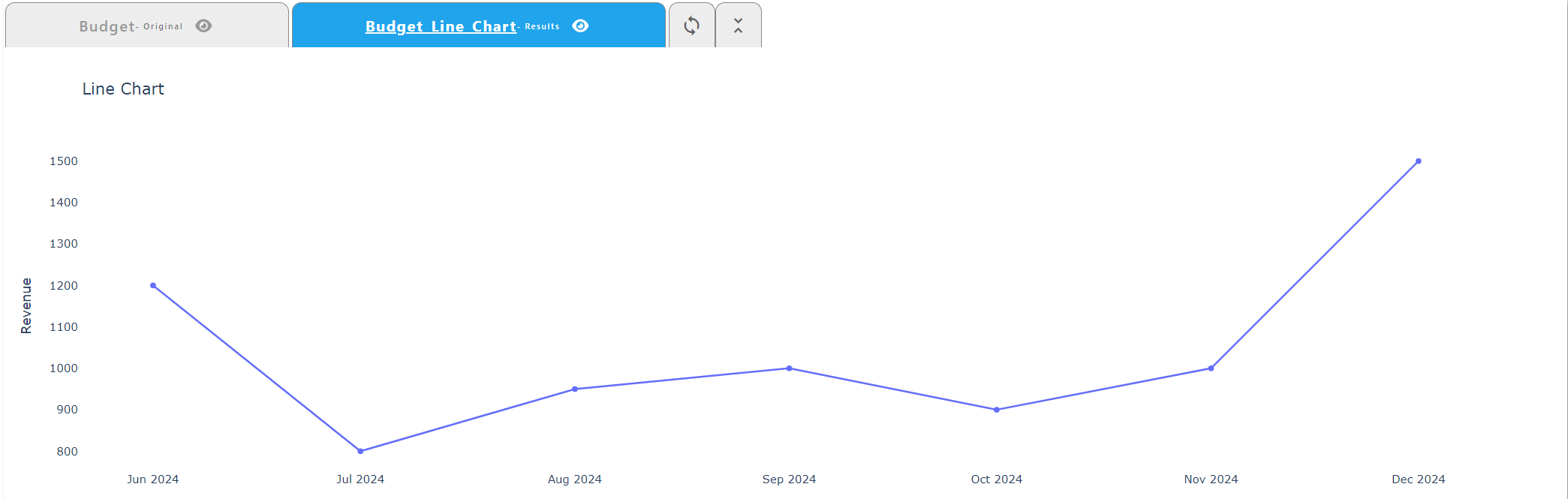 A Line Chart visual based on the given inputs. It will generate a new tab displaying the chart.